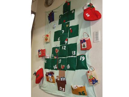 カレンダーになっているポケットには子どもに1つづつのお菓子や小さなプレゼントが入っています